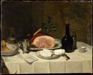 Nature Morte Aux Pieces De Ceramique, Verre Et Poterie Sur Un Entablement