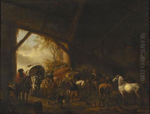 Landscape With Cavalrymen Crossing A Ford And Peasants Taking Refreshment From A Wagon
