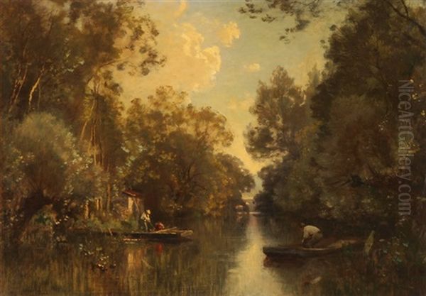 Flusslandschaft Mit Zwei Booten
