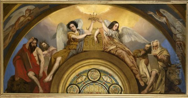 Bring the timeless beauty of Pierre-Jules Jollivet's Esquisse pour l'eglise Saint-Louis-en-l'Ile : Les Reliques de la Passion - Deux anges et les quatre Evangelistes into your home with a handmade oil painting reproduction. Carefully recreated on canvas by skilled artists using traditional techniques, this piece captures the delicate brushwork, subtle light, and vibrant color of the original masterpiece. With museum-level quality and rich texture, it brings elegance and artistic depth to any space. Enjoy free shipping and make this masterpiece a part of your personal collection.