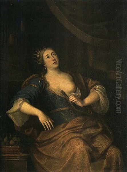 Pierre Mignard's Cleopatre (circa 1658) is a captivating Baroque masterpiece that exudes sensuality and poetic melancholy. The painting depicts Cleopatra reclining languidly, her luminous flesh contrasting with rich crimson drapery, while she gazes at a venomous asp coiled around her wrist—a dramatic foreshadowing of her tragic demise. Mignard’s virtuosic brushwork renders silken textures and pearly skin tones with almost tactile realism, embodying the French Baroque obsession with idealized beauty and emotional grandeur. As a premier portraitist under Louis XIV, Mignard infused this mythological subject with courtly elegance, blending Caravaggesque chiaroscuro with classical composure. The work stands as a pivotal bridge between Renaissance allegory and Rococo theatricality, influencing generations of French history painters.