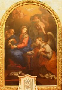 For home or office decor, this painting lends itself beautifully to traditional or classic interiors. Its warm golden and earthy hues pair well with rich wood furnishings, gilded frames, or neutral-toned walls that enhance its sacred glow. Ideal for a serene bedroom, study, or even a formal living room, the artwork’s intimate scale (assuming a typical devotional panel size, around 24x36 inches) suits medium-sized walls without overwhelming the space. For a harmonious display, consider matching its Baroque style with ornate mirrors or period-appropriate decor, or soften its formality in a transitional space with muted textiles and candlelight. In an office, it could inspire tranquility in a private study or reception area, ideally with indirect lighting to echo its ethereal radiance. Avoid clashing bold modern elements—let its devotional calm remain the focal point.