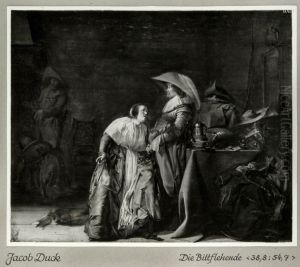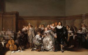 Interior With Militiamen Playing Tric-trac With Two Elegant Women
