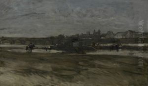 Pieter Gerard Vertin’s Stadtpartie In Utrecht is a captivating 19th-century Dutch cityscape that immerses viewers in the serene charm of Utrecht’s historic streets. Painted in Vertin’s characteristic realistic style, the work masterfully balances architectural precision with atmospheric warmth, showcasing gabled houses, cobblestone paths, and soft daylight filtering through the scene. As a prominent figure of the Hague School, Vertin contributed to the Dutch Romantic movement, emphasizing mood and light over idealized grandeur. This painting exemplifies his skill in capturing everyday urban life with a poetic touch, offering a glimpse into the Netherlands' architectural heritage. Its historical significance lies in its documentary quality, preserving a vanishing era while embodying the 19th-century European shift toward intimate, locale-specific landscapes.