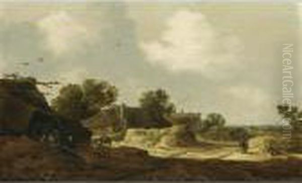 A Dune Landscape With Travellers On A Path And Peasants Resting Near Farms