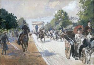 When displaying L'avenue Foch in interior spaces, consider placing it as a sophisticated focal point in transitional areas like formal dining rooms or executive offices where its cultured elegance shines. The painting's soft blue-grey and golden palette pairs beautifully with neoclassical furniture or Art Deco accents, creating harmonious dialogues between artwork and decor. For optimal visual impact, select a wall with ample indirect lighting to enhance its atmospheric brushwork—positioning it approximately 60 inches from floor to center maintains ideal viewing height. In contemporary settings, the artwork provides exquisite contrast against minimalist backdrops; try floating it above a sleek console or between tall bookshelves. A medium-large frame (approximately 24x36 inches) with gilded champagne tones would accentuate its luminous qualities without overwhelming modern spaces. The painting's inherent refinement makes it particularly suitable for spaces requiring subdued sophistication, where it subtly elevates the ambiance without demanding attention.
