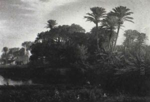 The painting Vue D'egypte by Prosper-Georges-Antoine Marilhat transports viewers to the mystical landscapes of 19th-century Egypt with remarkable vividness. Marilhat, a French Orientalist painter, captures the golden glow of the desert sun illuminating architectural ruins, palm trees, and figures draped in traditional garments, evoking a sense of timeless serenity and exotic grandeur. His meticulous attention to detail and mastery of light reflect the Romantic fascination with the East, blending documentary precision with poetic ambience. Created during his travels in Egypt (1831–1833), the work exemplifies Orientalism’s allure in European art, yet Marilhat’s restrained drama sets him apart from more theatrical peers like Delacroix. Today, Vue D'egypte remains celebrated for its atmospheric realism and contribution to 19th-century Orientalist painting, offering a window into both historical perception and artistic virtuosity.
