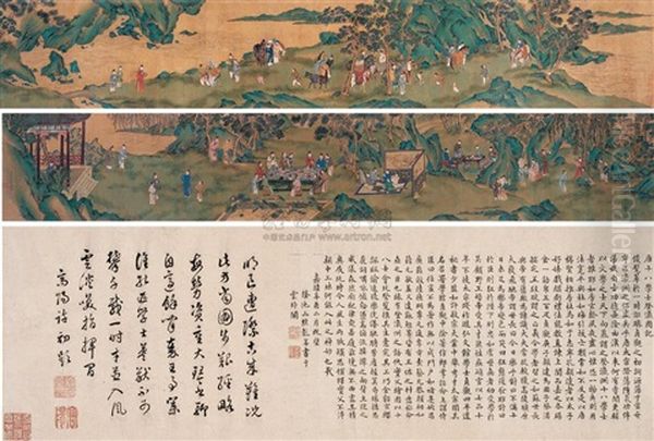 Qiu Ying's Landscape is a mesmerizing masterpiece that transports viewers into a tranquil world of poetic harmony. As one of the Four Great Masters of the Ming Dynasty, Qiu Ying (c.1494-1552) excelled in creating delicate, refined landscapes that blended meticulous detail with lyrical spontaneity. This particular work embodies the quintessential "blue-green" style (qinglü), reviving the Tang Dynasty tradition of mineral-rich pigments applied in jewel-like layers. The composition typically features misty mountains with cascading waterfalls, scholar's pavilions nestled among pines, and tiny figures lost in contemplation – all rendered with astonishing precision on silk. Qiu's significance lies in his ability to synthesize courtly elegance with literati sensibilities, making his landscapes highly sought after by both imperial collectors and scholar-officials. The painting's dreamlike atmosphere, achieved through masterful ink washes and subtle color gradations, creates an immersive experience of idealized nature that continues to captivate audiences centuries later.