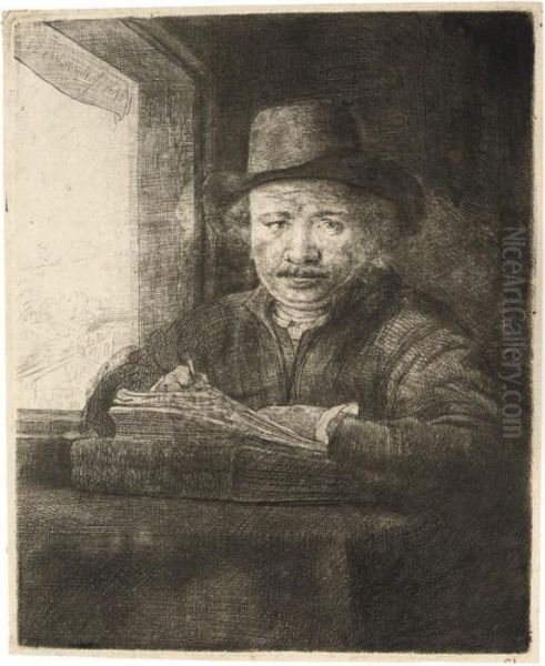 Self-portrait Drawing At A Window Oil Painting by Harmenszoon van Rijn Rembrandt