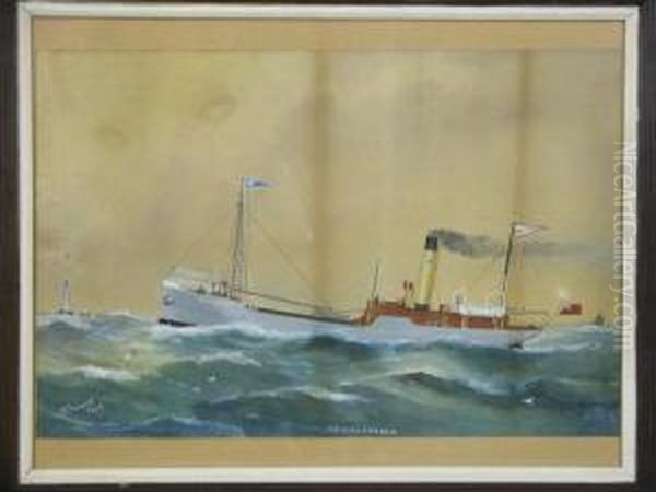 Reuben Chappell’s "ss Hull Trader" Coaster Off A Lighthouse captures the rugged charm of early 20th-century maritime life with remarkable precision. The painting depicts the sturdy coaster ss Hull Trader navigating near a lighthouse, its sails taut against the wind while the choppy seas convey both movement and tension. Chappell, a self-taught British marine artist, was renowned for his detailed ship portraits and dynamic seascapes, often favoring muted yet atmospheric palettes dominated by blues, grays, and earthy tones. His work reflects the traditions of British maritime painting, echoing predecessors like J.M.W. Turner but with a distinctly accessible, documentary quality. Though less celebrated than some contemporaries, Chappell’s paintings are prized by nautical art enthusiasts for their historical accuracy and evocative simplicity. This piece, likely painted between the 1920s–1940s, offers a nostalgic glimpse into Britain’s industrial coastal heritage, making it a valuable artifact of maritime art history.