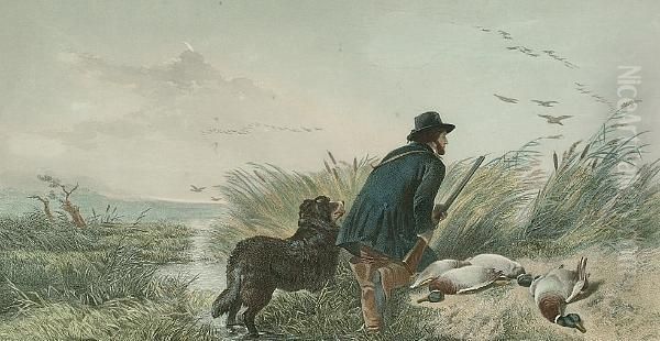 Shooting Grouse by Richard Ansdell (1815–1885) captures the rugged romance of 19th-century British field sports with dynamic realism. Painted in 1847 during the peak of Victorian sporting art, the scene pulses with energy: a hunter and his dogs brace against the wind as grouse burst from autumn heather, their wings slicing through the misty moorland. Ansdell’s meticulous brushwork – honed through his academic training at the Liverpool Academy – renders each feather and blade of grass with scientific precision, while the dramatic light evokes Sir Edwin Landseer’s influence. This masterpiece exemplifies the era’s fascination with rural aristocracy’s pursuits, bridging Romanticism’s emotionality and the Pre-Raphaelites’ detail-oriented approach. Today, it stands as a vital artifact in sporting art history, showcased in institutions like the Walker Art Gallery.