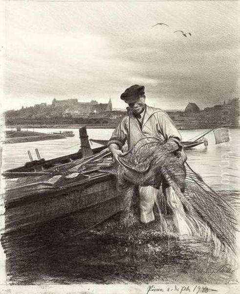 In Richard Muller’s Fischer Bei Pirna An Der Elbe, the tranquil yet evocative riverscape captures the essence of late 19th-century German realism. Set along the Elbe River near Pirna, the painting depicts fishermen navigating their boats amid softly rippling waters, enveloped by a muted atmospheric glow. Muller, influenced by the Dresden Art Academy’s traditions, masterfully balances naturalistic detail with poetic sensitivity, rendering delicate reflections and subtle tonal transitions that lend the work an almost dreamlike stillness. Though less internationally renowned than his contemporaries like Caspar David Friedrich, Muller’s oeuvre—particularly this piece—exemplifies Germany’s regional Romanticism, bridging the introspection of early Romantic landscapes and the emerging precision of modern realism. Its quiet drama and technical refinement make it a significant, if understated, work in Central European art history.