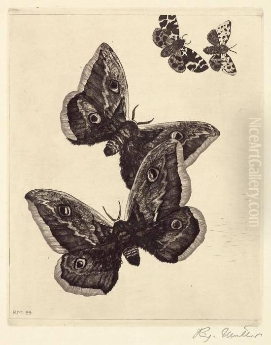 Richard Müller’s Vier Schmetterlinge (Four Butterflies) or alternatively known as Maus mit Hafer (Mouse with Oats) is a captivating example of early 20th-century symbolism and realism. Born in Bohemia and later influential in Germany, Müller (1874–1954) was celebrated for his meticulous draftsmanship and unsettling, dreamlike compositions. This work, characteristic of his oeuvre, blends hyper-detailed naturalism with subtle surrealism—the delicate butterflies or the solitary mouse juxtaposed against textured surfaces create an eerie, almost allegorical tension. Müller’s art, though less discussed than his contemporaries like Klimt or Schiele, occupies a unique niche in art history for bridging academic precision with psychological depth. His association with the Dresden Academy and later dismissal by the Nazis for being "degenerate" adds historical weight to his works, making Vier Schmetterlinge a poignant piece of repressed artistic narratives between the World Wars.
