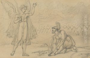 Richard Westall was an English painter and illustrator who lived during a period that saw the transition from the Georgian to the Victorian era. Born on January 2, 1765, in Hertford, Westall showed an early talent for art. He was apprenticed to an engraver but soon found his passion in painting. He moved to London and entered the Royal Academy Schools in 1785, where he received the traditional training in the arts of the period.