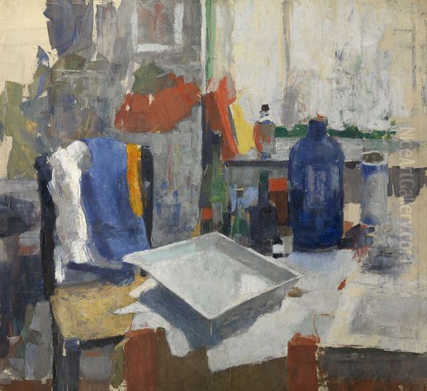 Rik Wouters' Etstafel radiates with the luminous vibrance characteristic of the Belgian Fauvist's joyous yet brief career. Painted around 1915 during his exile in the Netherlands amid World War I, this still life bursts with exuberant color—sunlit yellows, rich blues, and fiery reds dancing across the canvas in thick, expressive strokes. Wouters’ distinctive style blends Fauvism’s bold chromatic intensity with a softer, almost domestic tenderness, capturing the humble beauty of a dining table set with fruit, ceramics, and everyday objects. Despite his tragically early death in 1916, Wouters left an indelible mark as a bridge between post-Impressionism and modernism in Belgium, with Etstafel embodying his mastery of light and emotion. The work stands as a testament to his ability to transform mundane scenes into celebrations of life, even amid personal suffering.