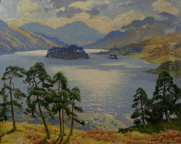 The Queen's View by Robert Houston captures a breathtaking Scottish landscape with an almost poetic sensibility. Painted in the mid-20th century, this work showcases Houston's mastery of light and atmosphere, depicting the iconic viewpoint overlooking Loch Tummel in Perthshire, famously associated with Queen Victoria’s visit in 1866. The composition balances grandeur and serenity—rolling hills, still waters, and a softly illuminated sky create a sense of timeless beauty. Houston’s style bridges realism and impressionism, with delicate brushstrokes that enhance the scene’s natural harmony. As an artist deeply connected to Scotland’s vistas, Houston’s interpretation of The Queen’s View holds significance in British landscape painting, offering both historical resonance and a testament to the enduring allure of Highland scenery. The painting’s tranquil yet majestic mood invites viewers into a moment of quiet reflection.