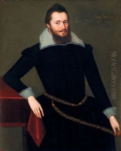 Portrait Of A Gentleman Wearing A Black Doublet With Gold Trim And White Lace Ruff