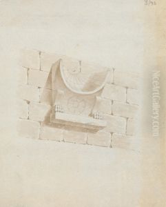 Sketch of a Ruined Temple, With a Figure Standing by the Remains of a Standing Pillar