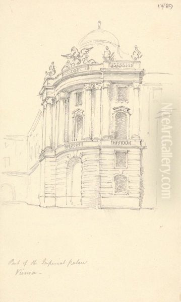 Robert Smirke's "Part of the Imperial Palace, Vienna" is a masterful depiction of imperial grandeur frozen in time. Painted during the early 19th century when architectural vedute were particularly prized by British collectors touring Europe, this watercolor showcases Smirke's precise draftsmanship and delicate handling of light. The composition frames Vienna's Hofburg Palace with photographic precision yet breathes life through subtle plays of shadow on Baroque facades and the movement of tiny figures in courtyard spaces. As part of the Romantic era's fascination with historic European architecture, this work exemplifies how British artists documented Continental landmarks with both topographical accuracy and atmospheric sensitivity. The painting holds particular significance in Smirke's oeuvre, created shortly after his 1802 Austrian tour that profoundly influenced his later architectural practice. Today it serves as valuable documentation of pre-modern Vienna while demonstrating the quiet poetry achievable in architectural watercolors.