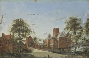 A River Landscape With A View Of The Bijlhouwerstoren, Utrecht, Setin A Village On The Bank