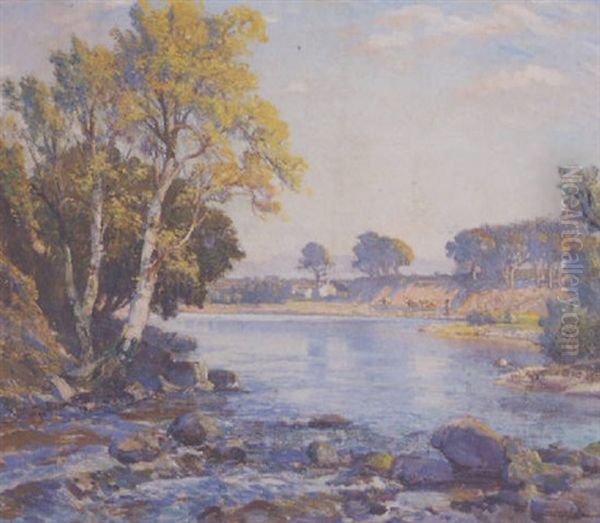 Bring the timeless beauty of Samuel John Lamorna Birch's River Landscape With Cattle Grazing On The Far Bank into your home with a handmade oil painting reproduction. Carefully recreated on canvas by skilled artists using traditional techniques, this piece captures the delicate brushwork, subtle light, and vibrant color of the original masterpiece. With museum-level quality and rich texture, it brings elegance and artistic depth to any space. Enjoy free shipping and make this masterpiece a part of your personal collection.