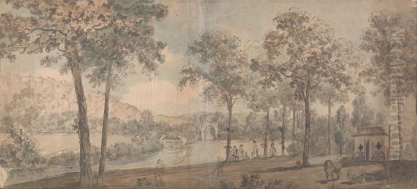 The painting Mr. Vaughan's, Boys Hill, Dorset by Samuel Scott is a captivating 18th-century English landscape that exudes tranquility and pastoral elegance. Scott, a renowned marine and topographical painter, masterfully captures the idyllic English countryside with meticulous detail and soft, naturalistic lighting. The composition likely features a gentle hill dotted with trees, a stately manor, or a winding path—typical of the picturesque aesthetic favored during the period. Created in the mid-1700s, this work reflects the transition from formal Baroque grandeur to the more intimate, romanticized views of nature that would later flourish in the Romantic era. Scott’s skillful use of perspective and delicate brushwork elevates the scene, making it both a historical document of English rural life and a testament to his artistic versatility beyond maritime subjects. Though less famous than his Thames Riverscapes, this piece embodies the quiet charm and refined craftsmanship that solidified Scott’s reputation as a key figure in British landscape painting.