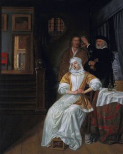 A Portrait Of Johan Cornelisz. Vijgeboom Handing His Wife, Anneken Joosten Boogaert A Tulip In The Garden Of Their Manor House Near Dubbeldam