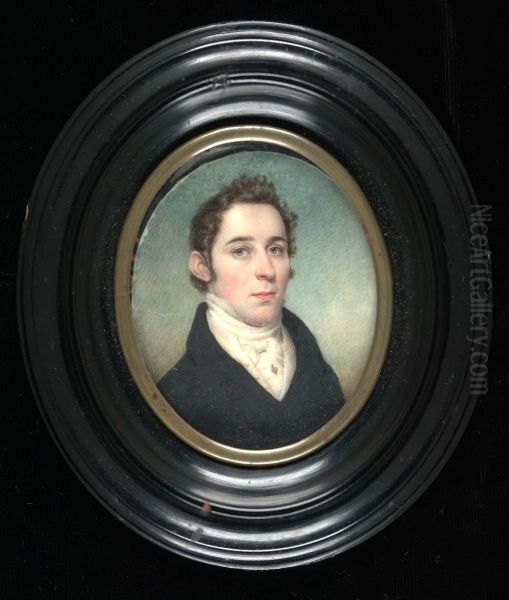 The Portrait of a Gentleman by Sarah Goodridge is an exquisite example of early 19th-century American portraiture, radiating quiet dignity and meticulous craftsmanship. Painted in the 1820s during the height of Goodridge’s career, this miniature work on ivory captures the sitter’s refined features with delicate brushwork and subtle tonal variations, characteristic of her signature watercolor-on-ivory technique. Goodridge—best known for her intimate miniatures, including Beauty Revealed for Daniel Webster—demonstrates here her keen eye for detail and ability to convey personality through restrained elegance. While she operated in the shadow of male contemporaries like Gilbert Stuart, Goodridge carved her own legacy as one of America’s foremost female miniaturists. The portrait’s subdued palette and focused composition reflect the Neoclassical influence of the era, prioritizing clarity and emotional poise. Today, it stands as a testament to her skill in elevating miniature painting beyond mere likeness into a nuanced art form.