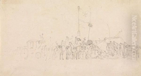 A Gathering of Horsemen, With Coach, Tents, Flags, etc. (?a horse fair)