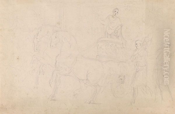 Roman Chariot Drawn by Three Horses, with Charioteer and other Figures