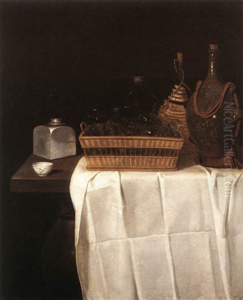 Still-Life with Glasses and Bottles by Sebastian Stoskopff (1597–1657) is a masterful depiction of 17th-century Northern European vanitas painting, imbued with quiet elegance and symbolic depth. The composition features meticulously arranged glassware and bottles, their translucent surfaces capturing delicate light reflections—a testament to Stoskopff’s virtuosity in rendering textures. As a leading figure of the Strasbourg school, Stoskopff’s work epitomizes the transition from Renaissance precision to Baroque theatricality, often infusing mundane objects with moral undertones (e.g., the fragility of life hinted at by fragile glass). This painting stands as a bridge between Dutch pronkstilleven (ostentatious still-life) and French sobriety, reflecting Calvinist austerity mixed with artistic flamboyance. Its historical significance lies in elevating still-life from decorative craft to philosophical commentary, influencing later artists like Chardin.