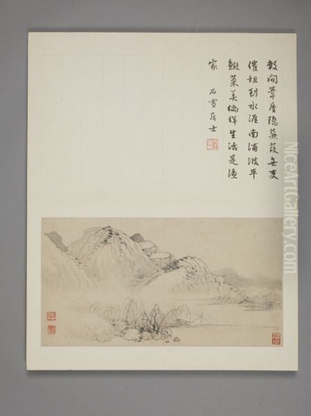 Shao Mi's Xiao Ke Guan Shan Shui Ce (Album of Miniature Landscapes) is a captivating masterpiece from the late Ming Dynasty, showcasing the artist's exquisite brushwork and poetic sensibility. These delicate album leaves (measuring roughly 20 x 15 cm each) embody the xiaopin (小品) aesthetic—intimate, spontaneous ink studies that capture fleeting moments in nature with remarkable economy. Shao Mi (1586-1661), a scholar-painter from Huating, refined the jiehua (界画) technique of architectural precision while infusing it with lyrical spontaneity. His landscapes often feature scholars' retreats nestled among misty peaks, rendered in subtle ink gradations with occasional light mineral pigments. Historically significant, this album bridges the meticulous courtly tradition with the expressive wenrenhua (literati painting) style, influencing later Qing Dynasty masters like Wang Hui. The palpable stillness and restrained elegance invite viewers into a contemplative world where human presence harmonizes with nature’s grandeur.