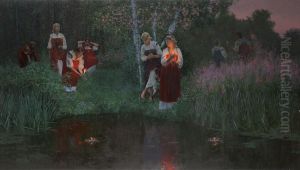 Ivan Kupala. Indovinare il corone di fiori. Di legno con gesso, olio. 85 x 150 cm.