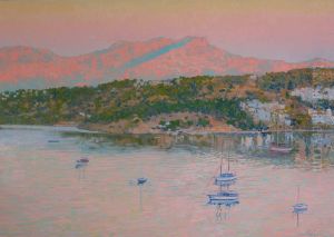 La salida del sol rosada. De Bodrum. De Gumbet. Oleo sobre lienzo. 64 x 93 cm.