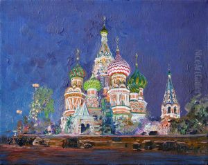 Kutsal Bakire Katedral, o Hendek (Aziz Basil Katedrali) gor. Tuval uzerine yagliboya. 24 x 30 cm.