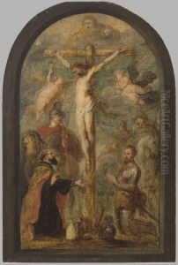 The Crucifixion, with a Bishop, a Saint, and a Donor in Armor