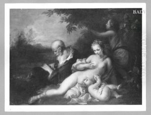 Lying naked woman, putto, dressed woman and old man ("Die 3 Lebensalter")