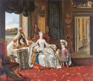 For spaces seeking elegance with emotional resonance, this painting is a versatile choice. In a living room or study, its warm tones—ochre, cream, and russet—pair beautifully with classical or transitional decor. A gilded frame enhances its regal air, while a matte black or walnut frame modernizes it for offices. Hang it at eye level (centered around 57–60 inches from the floor) to command attention without overwhelming. Ideal above a mantel or sofa, its 141.6 x 113 cm size demands ample wall space; smaller reproductions suit cozy corners. Complement the palette with neutral upholstery and metallic accents, allowing the artwork to anchor the room’s narrative of sophistication and familial warmth.