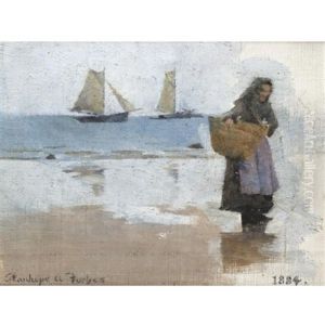 Study For A Fish Sale On A Cornish Beach Oil Painting by Stanhope Alexander Forbes