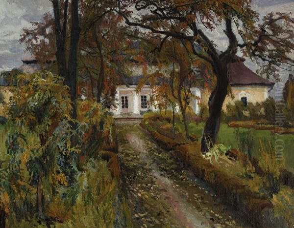 Stanislaw Kamocki’s Manor House in Autumn is a captivating example of Polish plein-air painting from the early 20th century. Bathed in golden autumn light, the scene depicts a rustic manor surrounded by vibrant foliage, its warm hues of ochre, crimson, and amber evoking a sense of nostalgic tranquility. Kamocki, a prominent figure of the Young Poland movement, masterfully blends Impressionist brushwork with a distinctly Eastern European sensibility, capturing the fleeting beauty of the season with poetic realism. Painted circa 1910, the work reflects his fascination with rural landscapes and architectural heritage, offering a glimpse into Poland’s bucolic charm. Historically, Kamocki’s oeuvre bridges late 19th-century realism and emerging modernist tendencies, cementing his role as a key transitional artist in Central European art. This piece, with its harmonious composition and emotive palette, remains a celebrated representation of autumn’s ephemeral splendor.