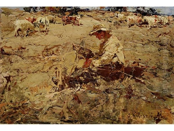 A Peasant Oil Painting by Stepan Feodorovich Kolesnikov