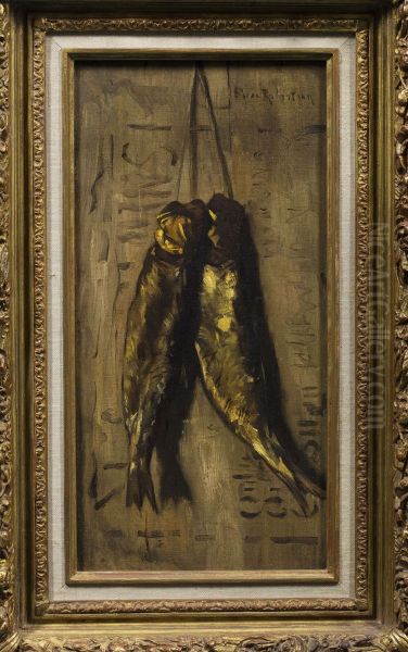 In Fish Still Life by Suze Robertson (1855–1922), the artist’s bold brushstrokes and earthy palette evoke a rugged yet intimate atmosphere. Painted in the late 19th or early 20th century, this Dutch work embodies Robertson’s distinctive style—a fusion of realism and expressive impasto, bridging traditional still-life conventions with modernist energy. The composition centers on raw, freshly caught fish, their silvery scales and fleshy textures rendered with tactile urgency. Dark, moody backgrounds contrast with subtle highlights, creating a dramatic play of light and shadow. As one of the few female artists of her time to gain recognition, Robertson challenged gendered norms in art, and this piece exemplifies her ability to transform modest, everyday subjects into powerful statements. Her work occupies a unique space in art history, aligning with the Hague School’s realism while foreshadowing later expressionist tendencies.