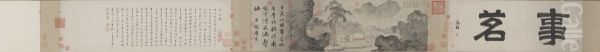 Tang Yin Shi Ming Tu Juan, a masterpiece by the legendary Ming dynasty painter Tang Yin (1470-1524), transports viewers to a serene world of scholarly refinement. This handscroll, executed in delicate ink and light color on paper, epitomizes the wenrenhua (literati painting) tradition with its poetic depiction of a recluse enjoying nature. Against a backdrop of misty mountains and gnarled pines, the composition balances empty space with meticulous detail—a hallmark of Tang Yin’s mature style. As one of the "Four Great Masters of the Ming," Tang Yin infused this work with his characteristic blend of technical precision and lyrical spontaneity, capturing the Daoist ideal of harmony between humanity and landscape. The painting’s historical significance lies in its embodiment of late Ming literati aesthetics, where brushwork conveys both visual beauty and philosophical depth.