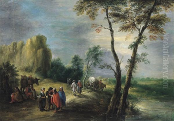Rastende Zigeuner Und Bauern In Einer Bewaldeten Flusslandschaft
