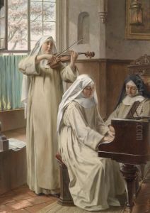 Liegender Akt Und Lautenspieler In Einem Kloster