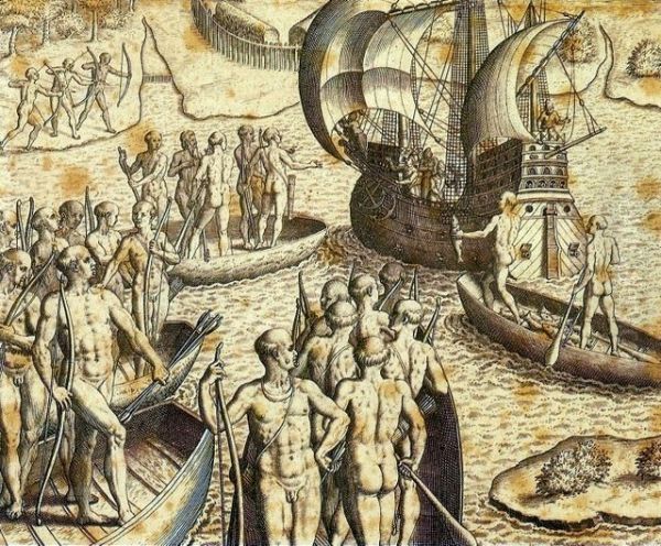 Attack of the Portuguese and the Tupiniquins against the Tupinambas' huts