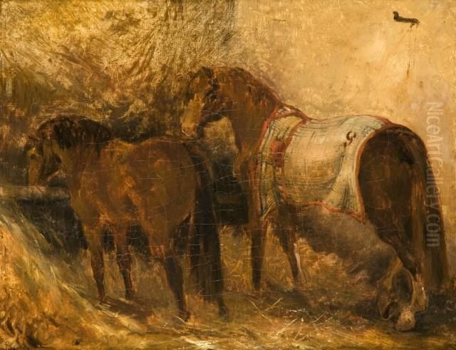Etude De Deux Chevaux A L'ecurie