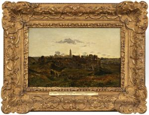 Un Paysage Avec Une Route Et Des Personnages, Un Village Dans Lefond