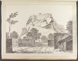 View of the Palace at Rohtas Ghur, Bihar by Thomas Daniell is a captivating example of 18th-century British colonial landscape painting, embodying the Romantic-era fascination with the exotic. The artwork, part of Daniell’s iconic Oriental Scenery series, depicts the rugged grandeur of the Rohtas Fort in Bihar, India, with mist-shrouded hills and crumbling architecture evoking a sense of sublime melancholy. Daniell’s precise draftsmanship and atmospheric use of light—reminiscent of Claude Lorrain’s classical landscapes—elevate the scene beyond mere documentation, transforming it into a poetic meditation on time and empire. As one of the earliest Western artists to systematically record India’s monuments, Daniell bridged topographic accuracy with artistic sensibility, making this work pivotal in shaping Europe’s visual imagination of the East. Today, it stands as both a colonial artifact and a masterpiece of Romantic Orientalism.