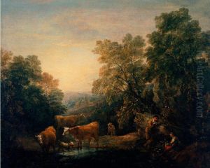 Rocky Wooded Landscape with Rustic Lovers, Herdsman, and Cows